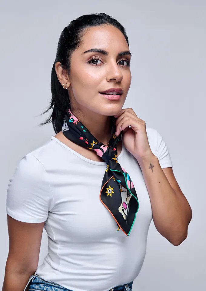 60cm x 60cm. Hand hemming. Made in Italy.
